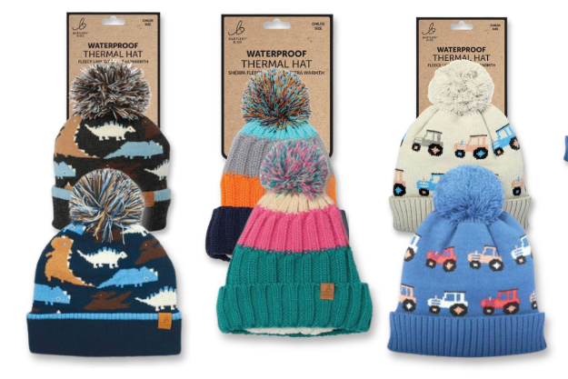 1. They keep heat in (which kids lose quickly). Children lose body heat faster than adults, especially through their heads. A thermal lining adds insulation that traps warm air close to the scalp, helping maintain body temperature - even in freezing or windy conditions. 2. Waterproofing keeps kids comfortable longer, which is great news when there are snowball fights, snow angels and splashing in slush to consider because the waterproof outer layer prevents melting snow or winter rain from soaking through. The benefit? It will keep their heads dry, which is essential because wet fabric draws heat away from the body and can quickly make a child cold.